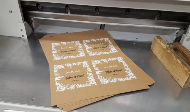 Faire part impression encre blanche sur kraft